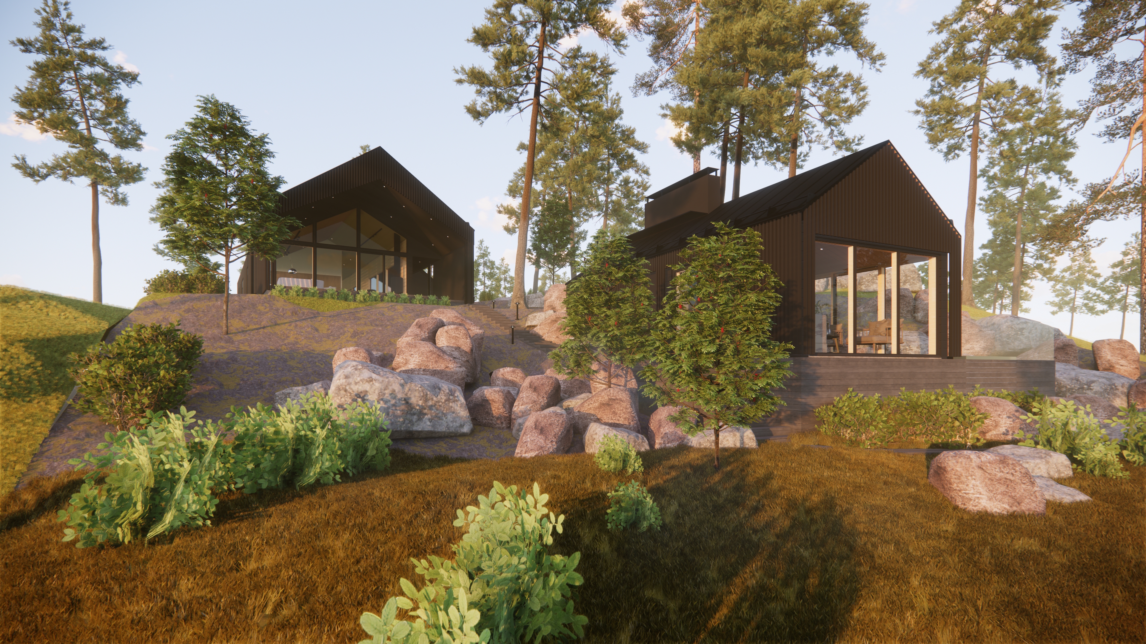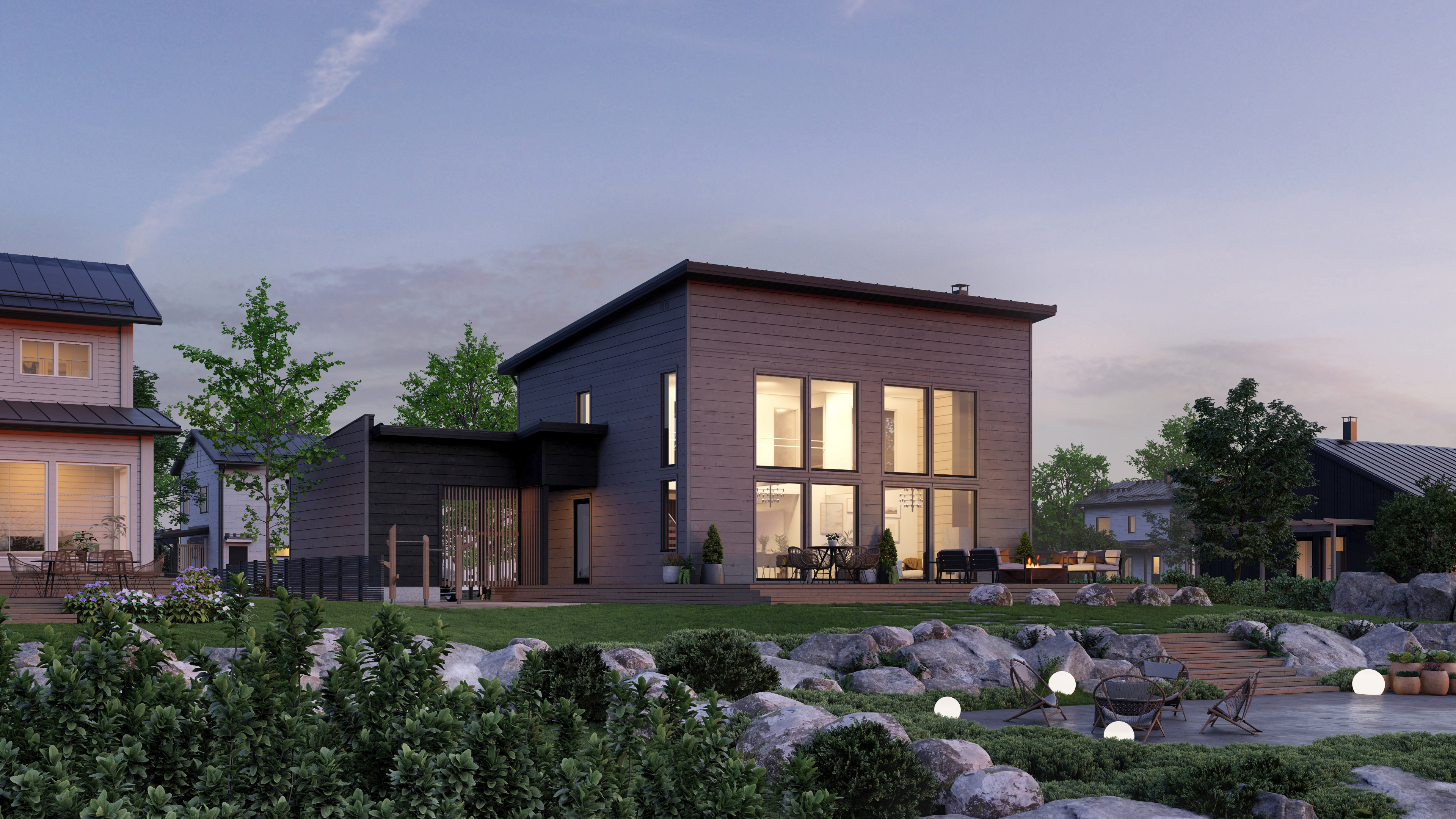 Koti on suunniteltu pariskunnalle, jonka lapset ovat jo muuttaneet kotoa, sekä heidän koiralleen. Tilasuunnittelussa tähdättiin kompaktiin ratkaisuun unohtamatta kuitenkaan avaruutta, valoa, asumisen väljyyttä sekä viihtyisyyttä. Arkkitehtuuri on funktionaalista ja linjakasta. Ympäröivä luonto on tärkeä osa kokonaisuutta.