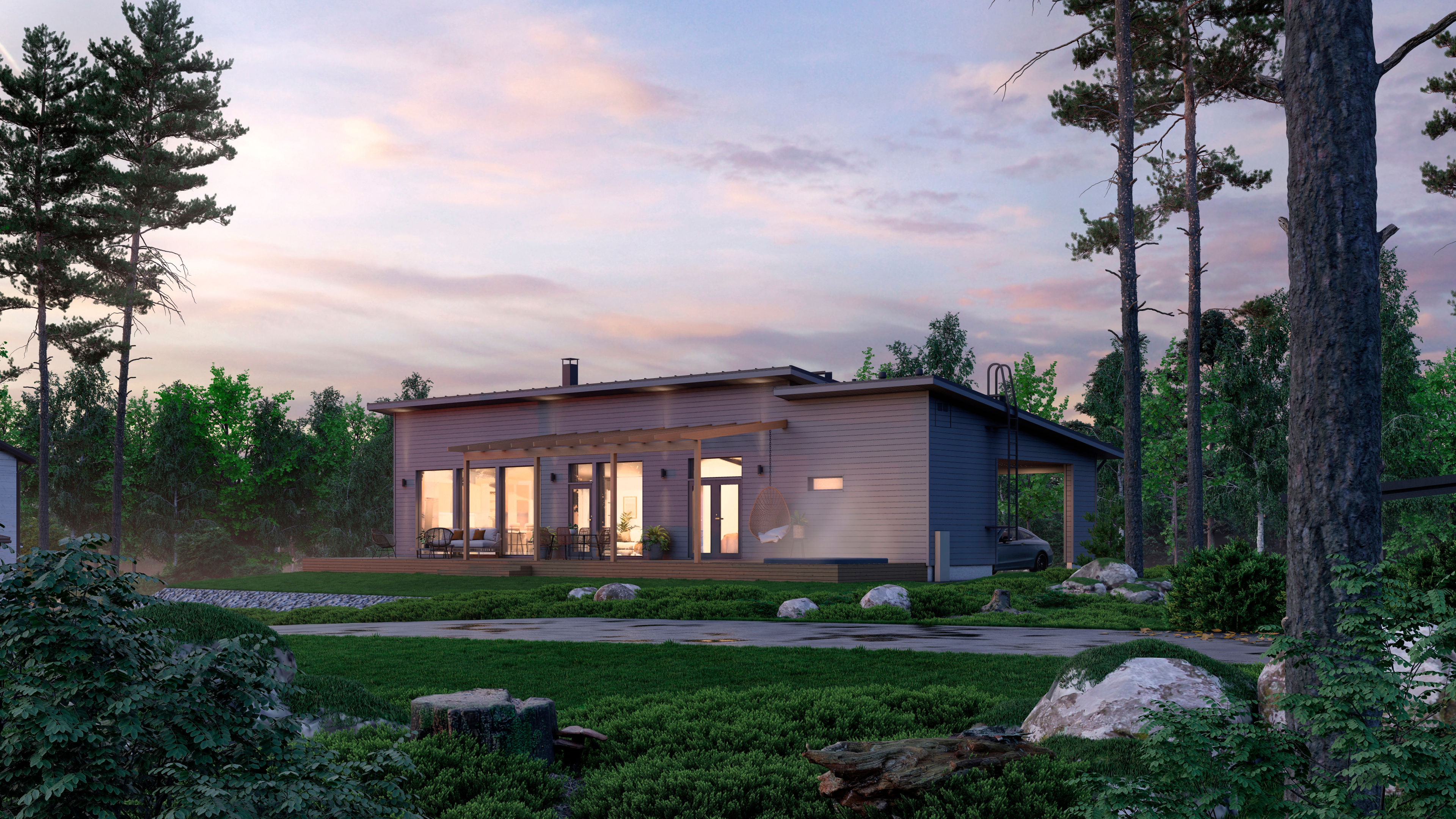 Designtalon suosituin malli, Nordic Classic Käpylä 128 Plus, on isän ja pojan kompakti koti. Olohuoneesta haluttiin iso ja avara tila, joten työhuone yhdistettiin olohuoneeseen. Kaksi makuuhuonetta muutettiin yhdeksi isoksi huoneeksi.