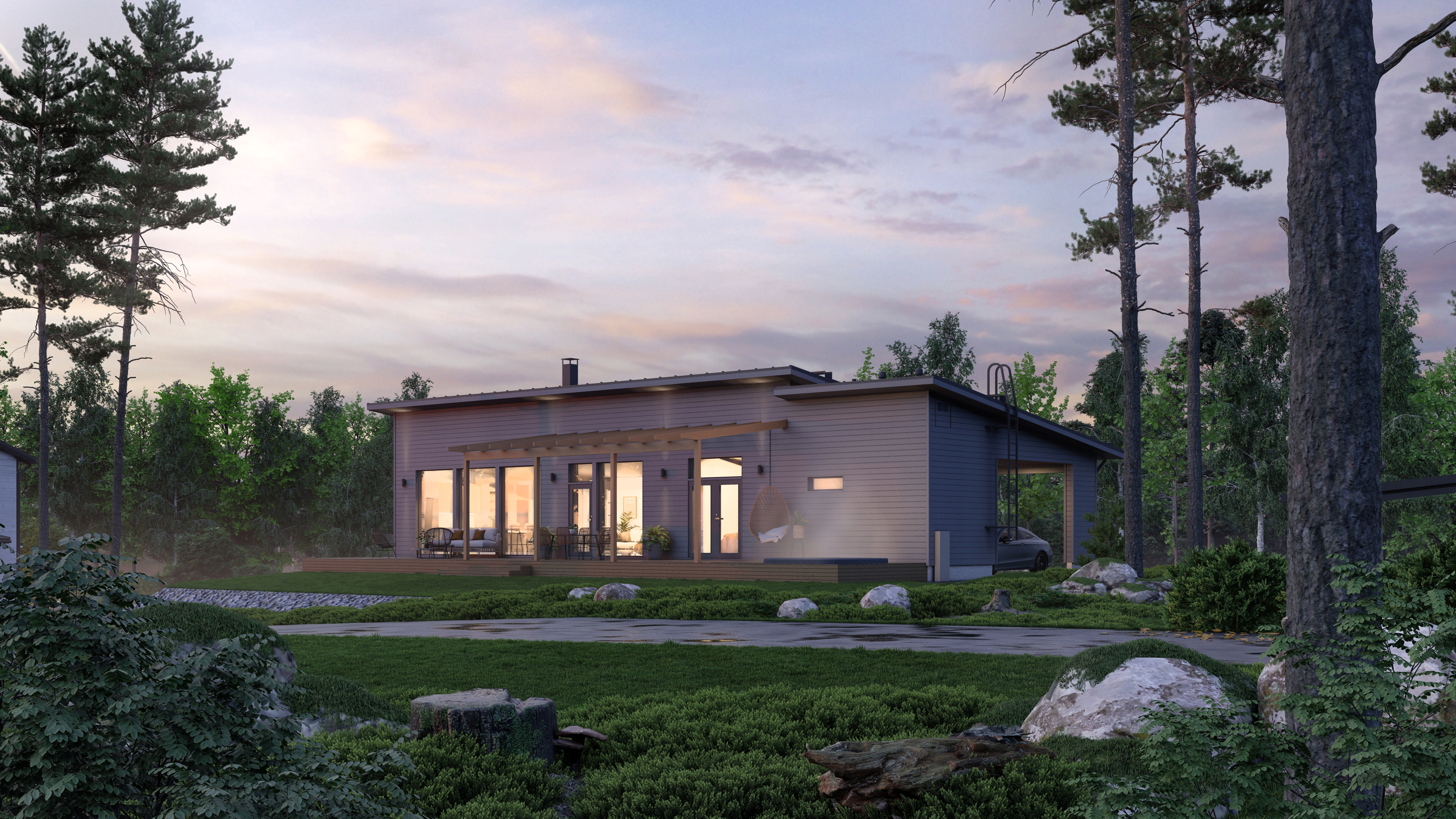 Designtalon suosituin malli, Nordic Classic Käpylä 128 Plus, on isän ja pojan kompakti koti. Olohuoneesta haluttiin iso ja avara tila, joten työhuone yhdistettiin olohuoneeseen. Kaksi makuuhuonetta muutettiin yhdeksi isoksi huoneeksi.