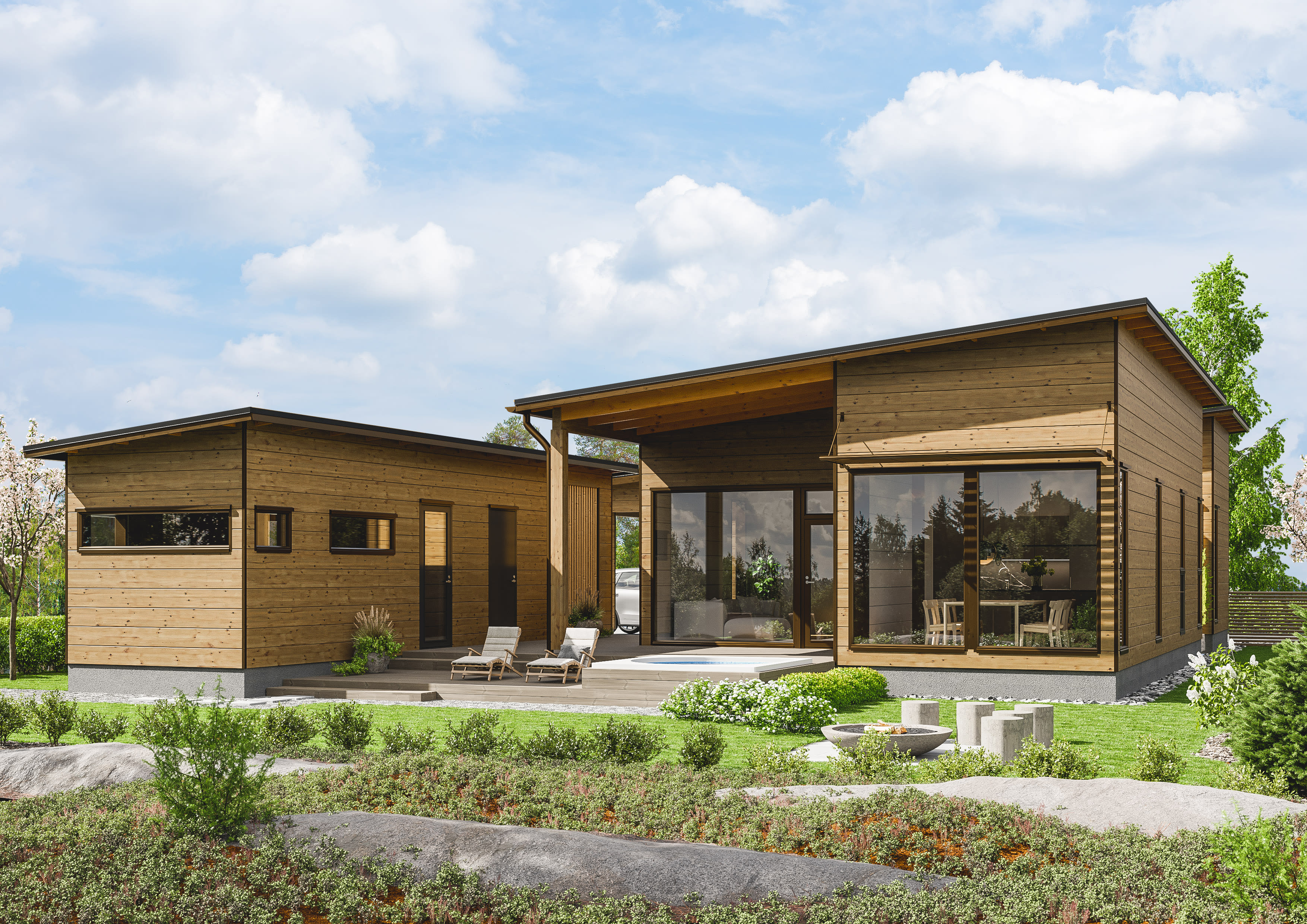 Terveellinen sisäilma, esteetön alakerta ja ekologisuus olivat suunnittelun lähtökohtia. Puu näkyy ja tuntuu kaikkialla: sekä materiaalivalinnoissa, tunnelmassa että sävyissä. Ulkopinnat on viimeistelty kuullotteella ja autokatoksen kasvikatto on päällystetty jäkälällä. Esteettisesti oivaltava ratkaisu tukee luonnon monimuotoisuutta.