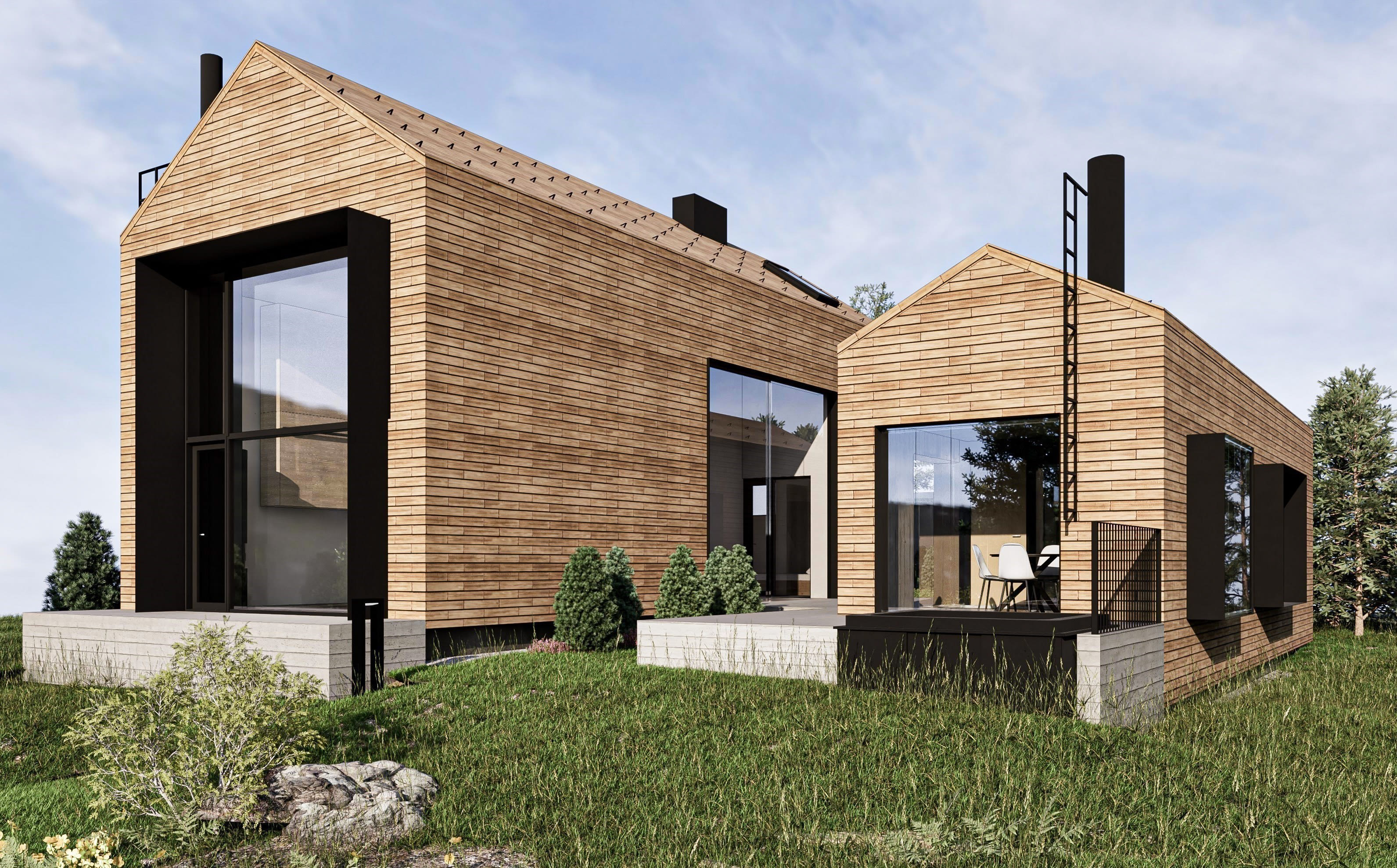 Kaksi eriväristä CLT-taloa, yksi jaettu elämäntapa. Veistoksellinen arkkitehtuuri, yhteinen kesäkeittiö ja puoliyksityinen puutarha yhdistävät perheet. Rakennusmateriaalina käytetty massiivipuu hengittää pohjoista estetiikkaa, ja aurinkoenergia, viherkatot sekä sähköautojen latausasema kertovat ekologisista valinnoista. Arki, estetiikka ja yhteisöllisyys nivoutuvat tässä kohteessa yhteen.